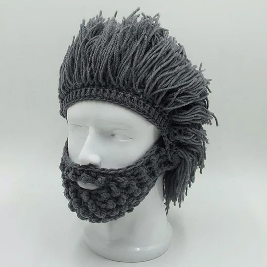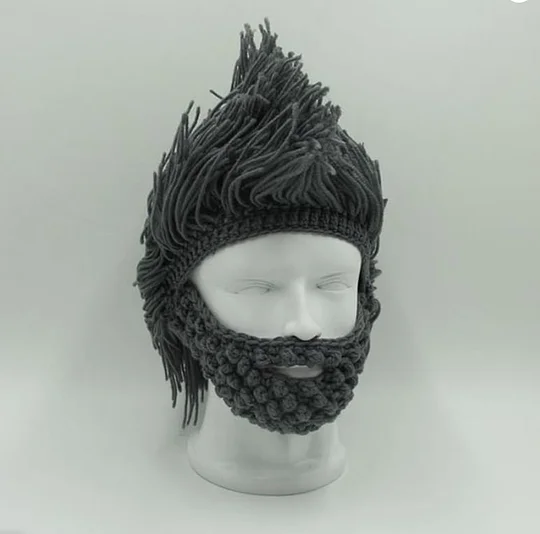 Buďte duší večírku s touto akrylovou punk čepicí! Se součástí rovnou parukou a pevně spleteným vousem je to ideální doplněk pro vašeho vnitřního barbaře nebo tuláka. 🥰